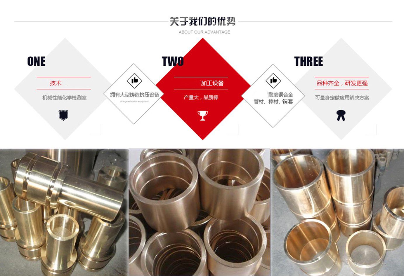 河間市銅套制品有限公司的生產設備精良,擁有40臺國內外先進設備;工藝水平先進,擁有砂型鑄造,金屬鑄造,離心鑄造等技術;是專業研究,開發自制的金屬制品企業。公司坐落于滄州市河間市束城鎮,是國務院確定的經濟開發區,地處北方重要陸海交通樞紐,交通十分便捷,且位鄰米各莊物流園,物流十分快捷,全國各地達到48小時內到貨。  主要經營:公司主要生產銅套,自潤滑銅套,儀器配件等,如銅軸套、銅滑板、銅瓦、銅蝸輪、銅滑塊、石墨軸承、石墨滑板、汽車配件,儀表,絲杠,法蘭,沖壓件,儀器零件,國標,非標,各種規格各種材質的金屬制品。  產品應用領域:工程機械 水利機械 礦山設備 液壓設備 鍛造設備 化工設備 紡織設備 冶金行業 機械 重工輕工等諸多領域。  主要合作單位:首都鋼鐵集團 ,河北鋼鐵集團 ,唐山鋼鐵集團 ,承德鋼鐵集團, 北京普析, 天津塞特。  常用材質介紹:錫青銅:以錫為主要合金元素的銅基合金稱錫青銅,錫青銅在造船、化工、機械、儀表等工業中廣泛應用,主要用以制造軸承、軸套等耐磨零件和彈簧等彈性組件以及抗蝕、抗磁零件等,有高的強度、彈性、耐磨性和抗磁性,在熱態和冷態下壓力加工性良好,對電火花有較高的抗燃性,可焊接和纖焊,可加工性好,主要牌號有ZCuSn6Zn6Pb3,ZCuSn10Pb5,ZCuSn...